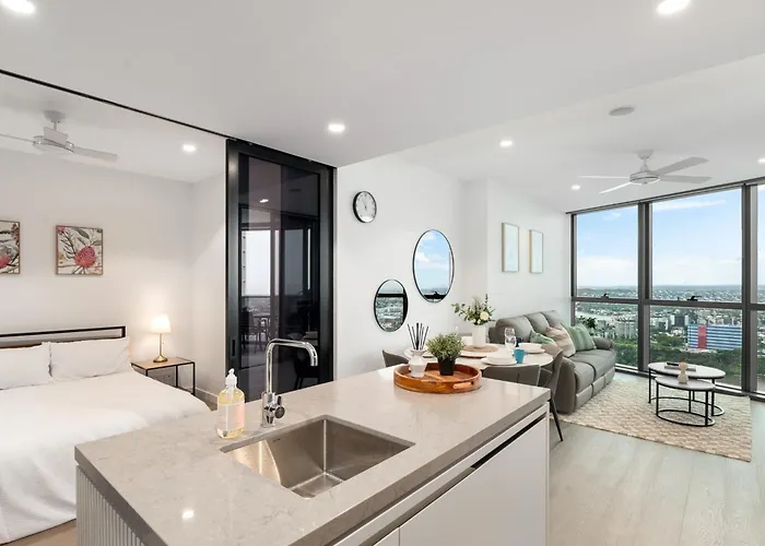 Qw Riverside Luxe Apartments By Independent Host Brisbane comprend une terrasse et est situé à environ 5 minutes de marche du Parlement du Queensland. La résidence se trouve également à quelques pas du jardin botanique de la ville et propose des équipements de nettoyage aux clients, notamment un sèche-linge.